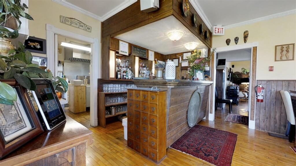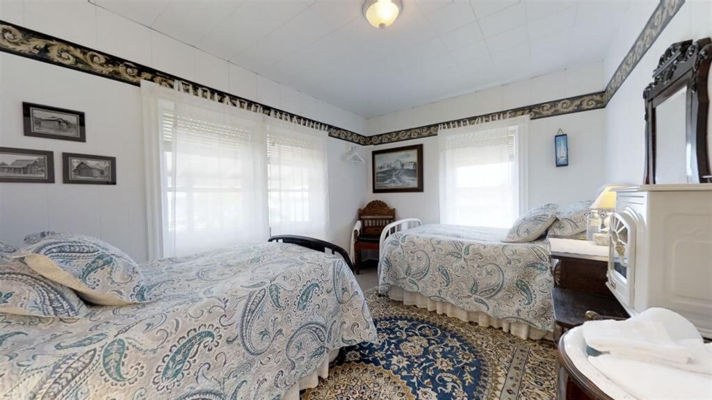 The main floor of the Inn has a large foyer and dining room, bar area, kitchen, laundry, and bathrooms. The second floor features seven uniquely decorated guest rooms, sharing two large bathrooms. The third level is dedicated to private owners’ quarters, consisting of two bedrooms, a large living room, kitchen, and bathroom.